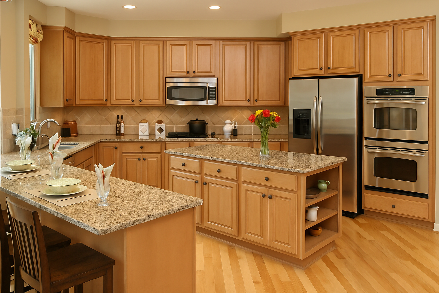 Visual Character: Light honey to soft amber tones that deepen with age. Straight, even grain free of knots for a calm, balanced presentation.