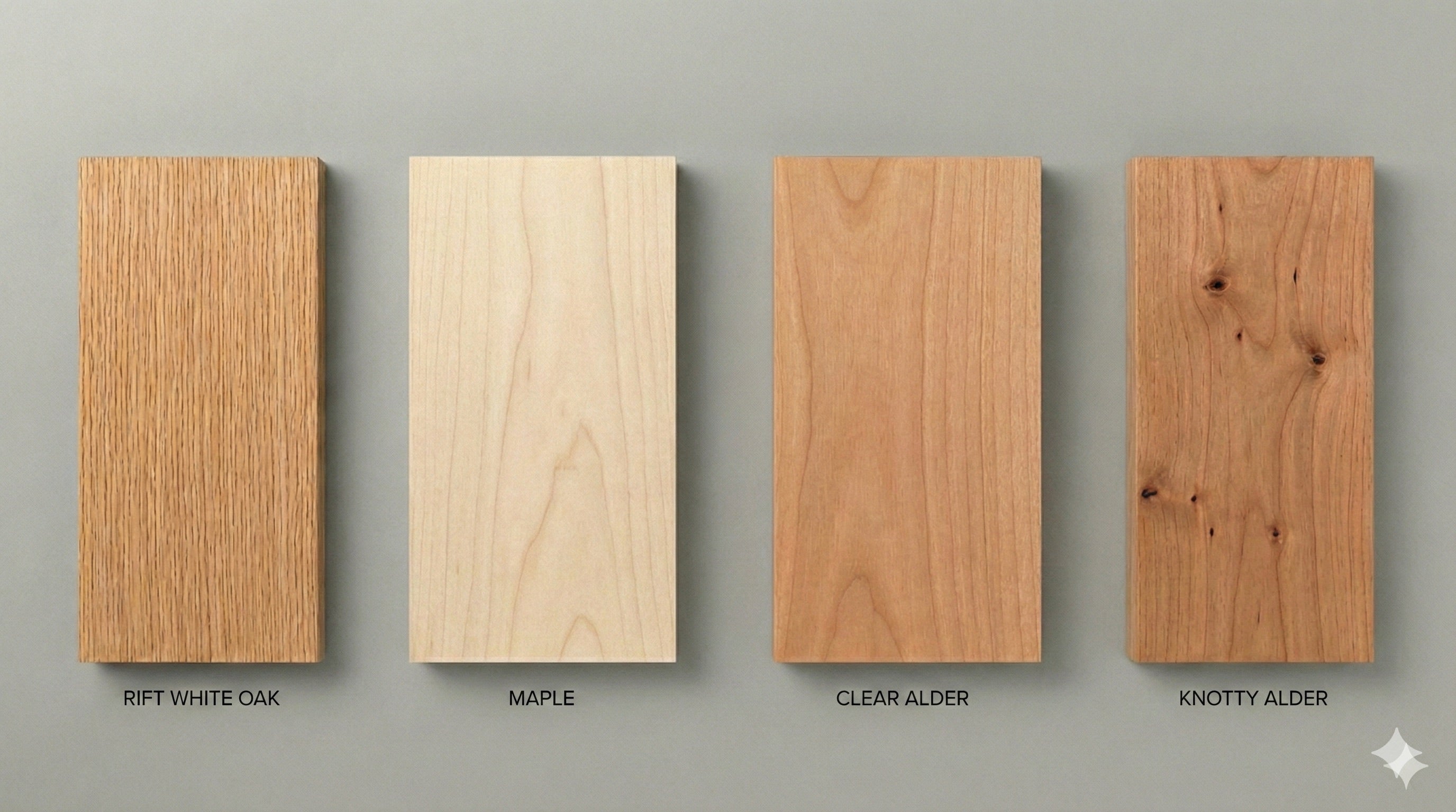 While a wide range of real wood veneers exists, from walnut and cherry to exotic imports, the four species we offer represent the overwhelming majority of design demand and performance consistency in architectural shelving. Rift White Oak, Maple, Clear Alder, and Knotty Alder cover the full spectrum of aesthetic intent: from crisp modern to warm traditional, from structured minimalism to organic texture.