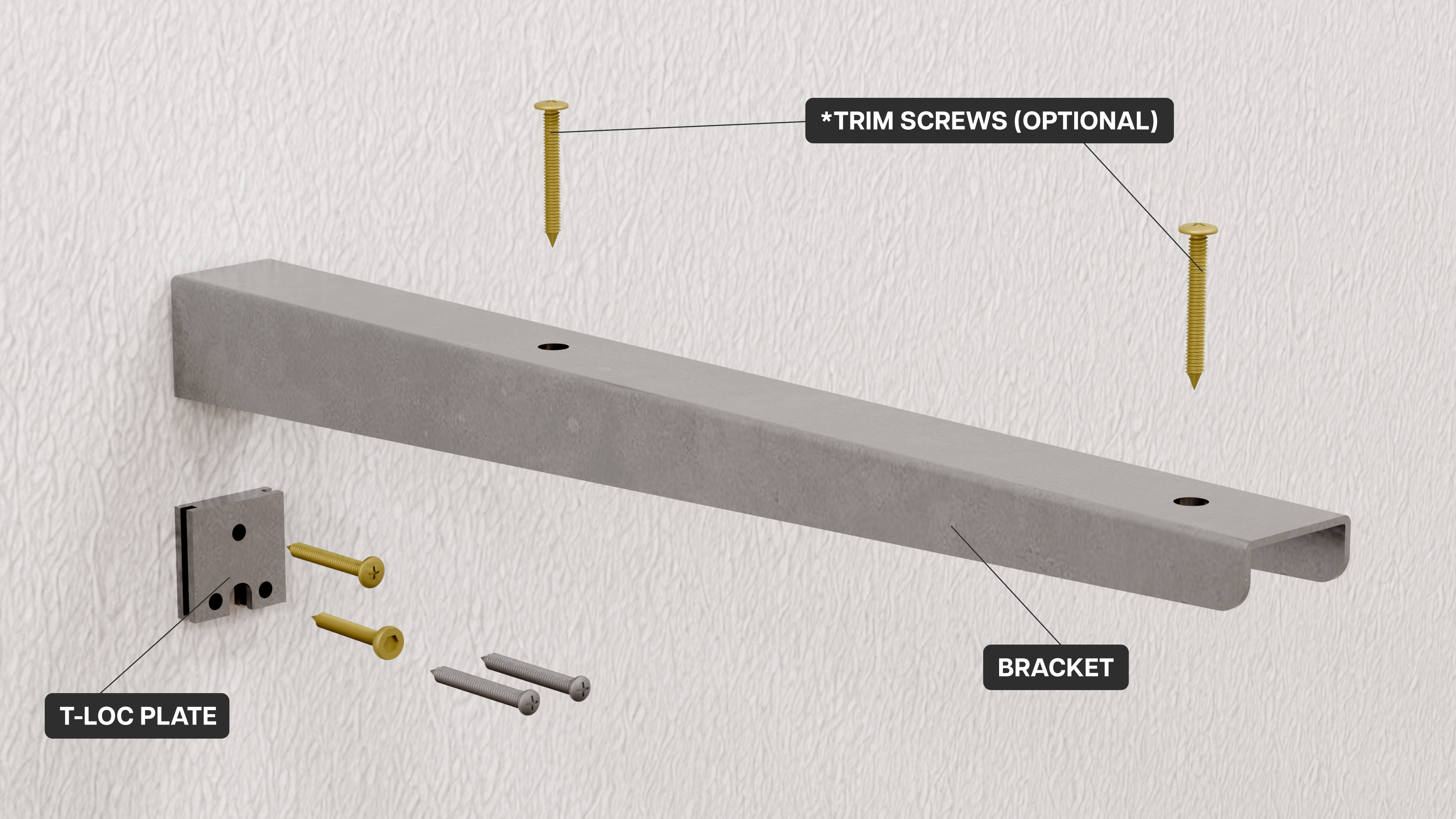 Attach the bracket by partially driving in the provided screws. Recheck the bracket is level, then fully tighten the screws. The Stinson bracket's all wood design will allow you to slightly modify the drill locations and to add additional screws if desired.