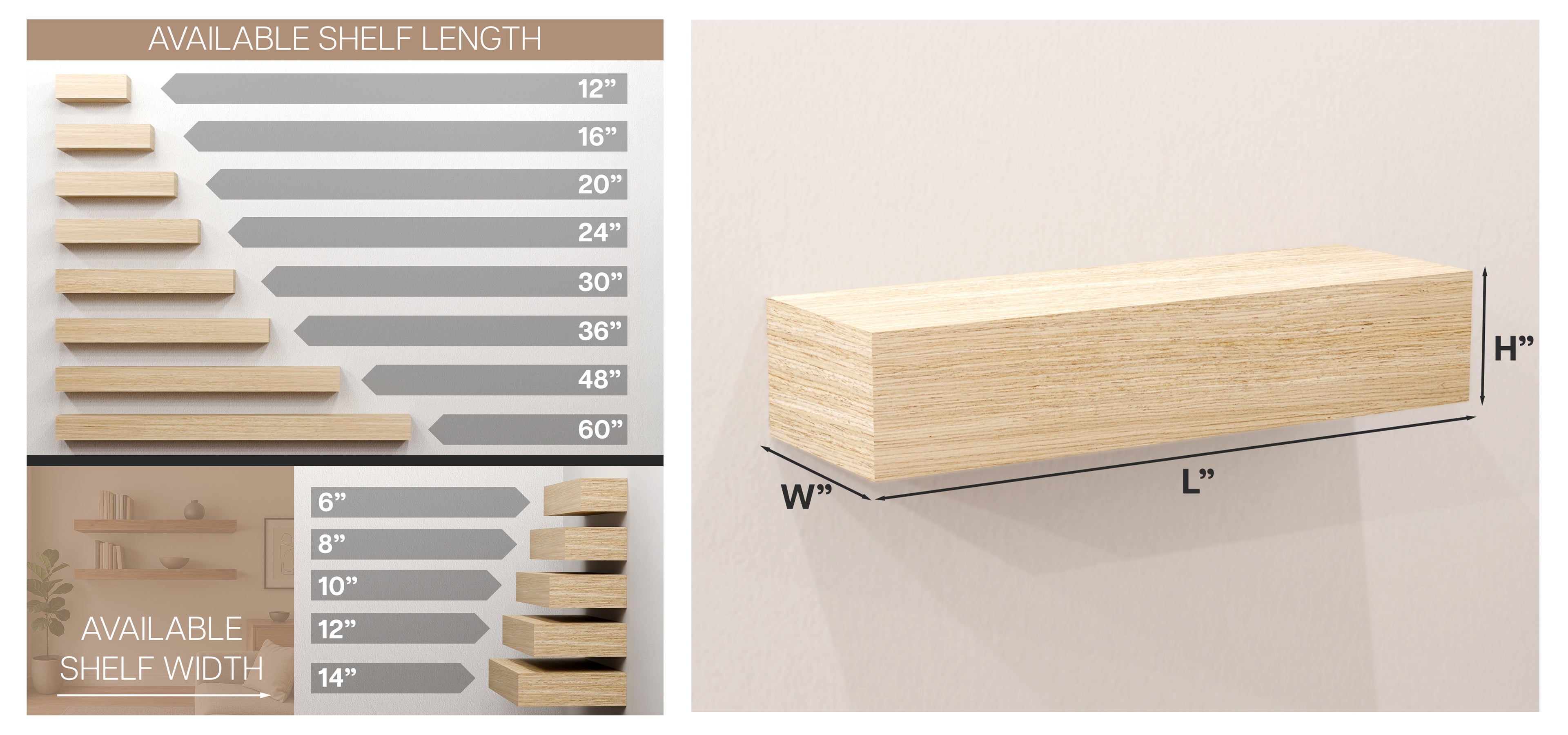 *Natural wood plank shelves are excluded due to their unique characteristics.